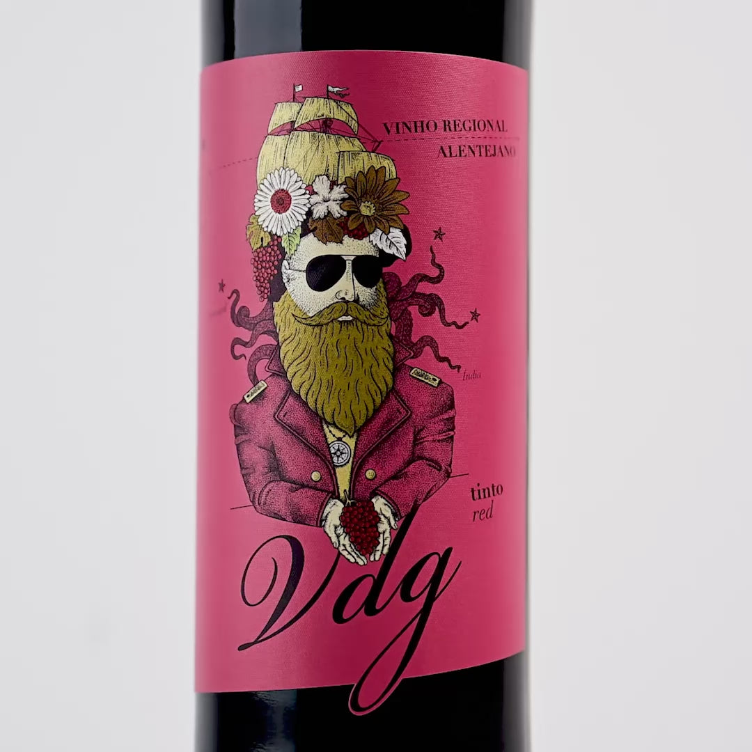 The name VDG Red reflects both personality and attitude. Designed to capture the creative spirit of Alentejo, it’s a wine that celebrates individuality and enjoyment. The artistic label – featuring a bearded figure full of character – mirrors the boldness found inside the bottle.